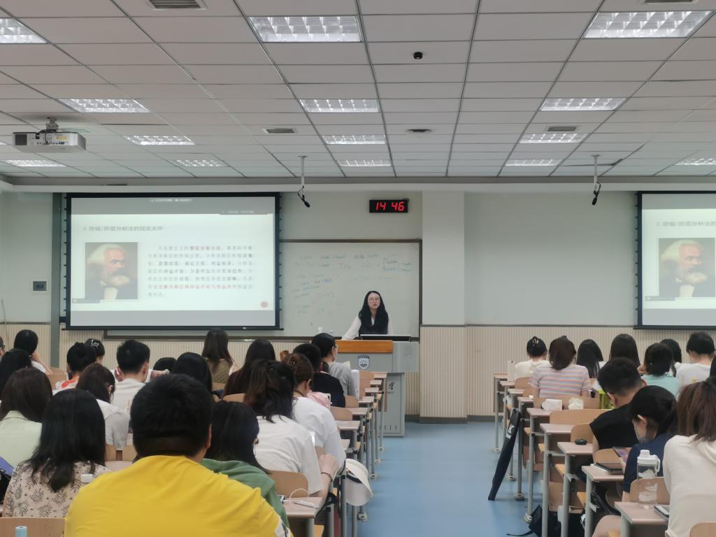 党课第三讲《努力掌握马克思主义思想方法和工作方法》(Strive to gain a good grasp of the Marxist ideological and working methods),由党员教师毕祖曜博士主讲。她指出“马克思主义是方法论”这一观点,并且引用了毛泽东、巴甫洛夫等人的观点解释了方法与方法论这两者不同的概念。同时,毕老师将马克思主义方法论与经济学相结合,生动有趣。她还讲述了阶级与阶层分析法,指出阶级是从经济到超经济的范畴,引经据典。她谈到,当代马克思主义方法论就是习近平新时代中国特色社会主义思想的世界观和方法论,就是必须坚持人民至上、坚持自信自立、坚持守正创新、坚持问题导向、坚持系统观念、坚持胸怀天下,我们要努力坚持好、运用好贯穿其中的立场观点方法。