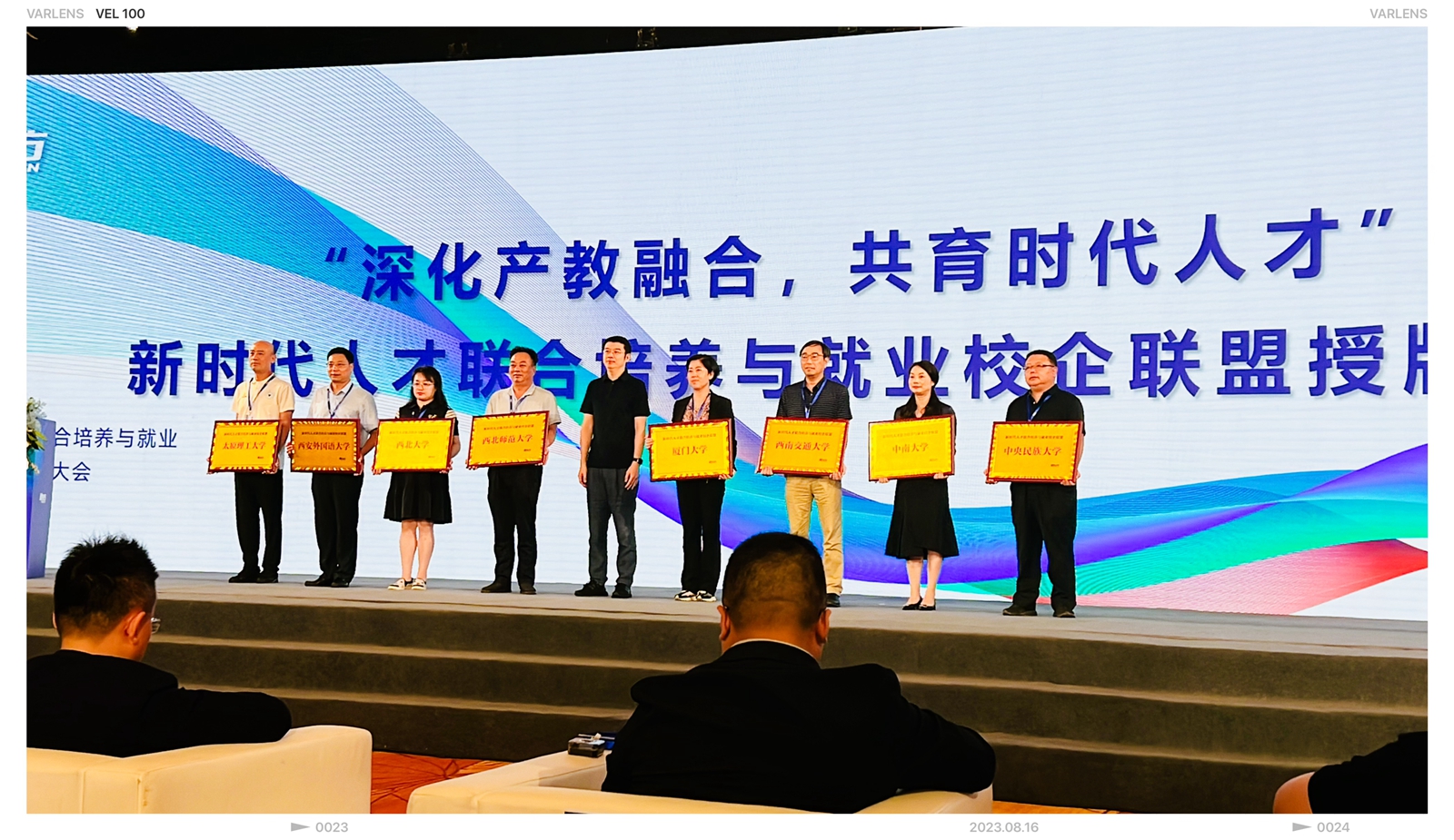 最后,大会现场举行了“新时代人才联合培养与就业校企联盟”授牌仪式。杨志辉分别为我校及厦门大学、南开大学、山东大学(威海)、中南大学、辽宁大学、吉林大学、兰州大学、大连理工大学、西南交通大学、太原理工大学、河北师范大学、大连外国语大学、广东外语外贸大学、哈尔滨师范大学、西北师范大学、江西师范大学、沈阳师范大学等30余所高校进行授牌,与会嘉宾一同见证了校企友好合作交流的新篇章。