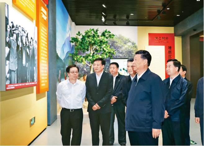 2019年5月20日至22日,中共中央总书记、国家主席、中央军委主席习近平在江西考察,主持召开推动中部地区崛起工作座谈会并发表重要讲话。这是习近平在赣州市于都县中央红军长征出发纪念馆会见于都县的红军后代、革命烈士家属代表。 新华社记者 鞠鹏/摄