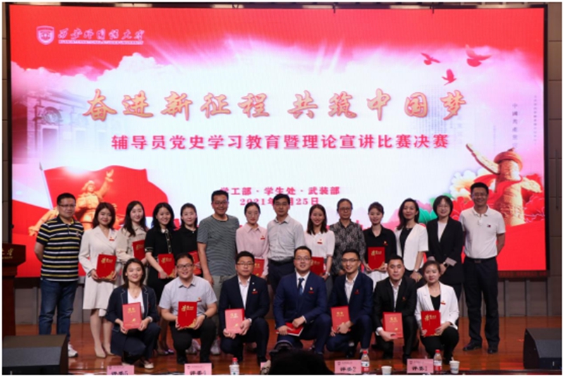庆祝中国共产党成立100周年,深入贯彻落实习近平总书记党史学习教育动员大会的重要讲话精神,进一步提高我校辅导员的政策解读能力和理论宣讲水平。学校于5月25日在教学楼A区111报告厅举办了“奋进新征程,共筑中国梦”辅导员党史学习教育暨理论宣讲比赛决赛。校党委副书记马洁,宣传部、组织部、统战部等部门负责人出席了本次大赛,各学院党委书记、副书记、学工办主任以及全体辅导员和部分学生代表到场观摩。