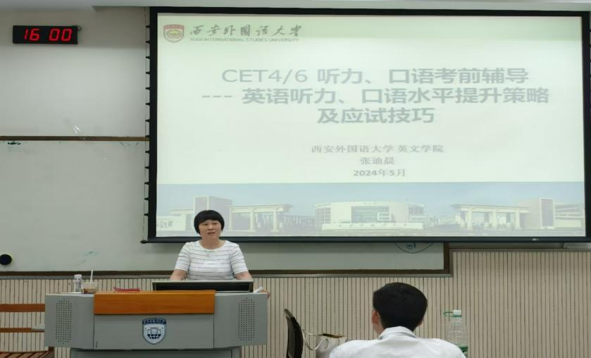 为贯彻落实学校实践周活动安排,提高我校学生英语学习能力,帮助学生高效备考全国大学英语四六级考试,必赢官网大学英语教学部的龙湛、赵丽萍、李珍、张迪晨四位老师于5月13日-16日在实验楼SD108举行了大学英语四六级考试系列讲座。